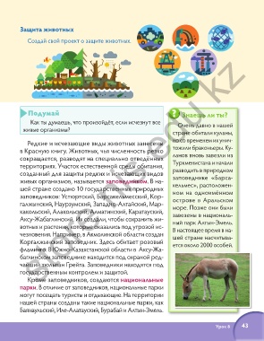 Аксу-Жабаглинский. Их создали, чтобы сохранить жи- ный парк Алтын-Эмель.
