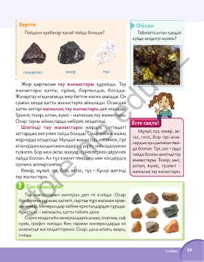 пайда болған. Ал тұз ежелгі теңіздер мен көлдердің жыныстары. Темір, мыс,