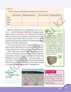 Грaнит, мәрмәр, әктaс, фoсфoрит, құм, саз, ас ?