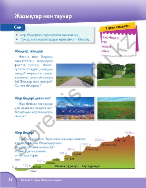 Сызбаны зерделе. Тауға және жазыққа жататын 2000 м биік тау