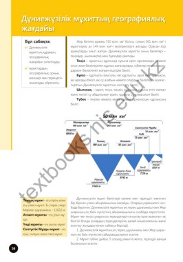 бада берілген. Дүниежүзілік мұхиттың ең терең шұңғымасы мен Жер