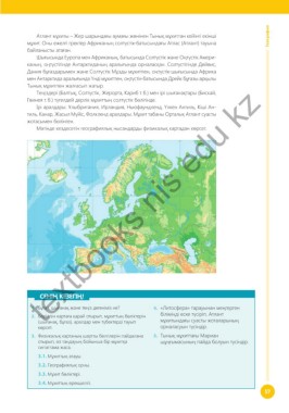 2. Берілген картаға қарай отырып, мұхиттың бөліктерін біліміңді еске түсіріп, Атлант