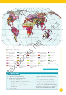 түсіндіріп көр. 4. Дүниежүзінің топырақ картасын пайдаланып,