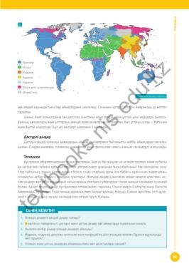 2. А картасын пайдаланып, дәстүрлі және ұлттық діндер қай аймақтарда таралғанын анықта.