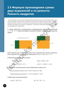ности квадратов этих алгебраических выражений, то есть (ab a b− )( + ) = a − 2 b .