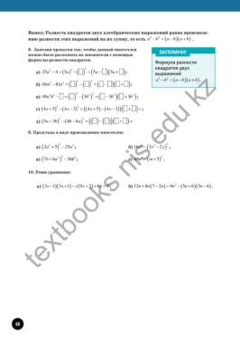 в) (7b + 6a 4 ) − 36b ; г) 49n − 4 (m + ) 5 .
