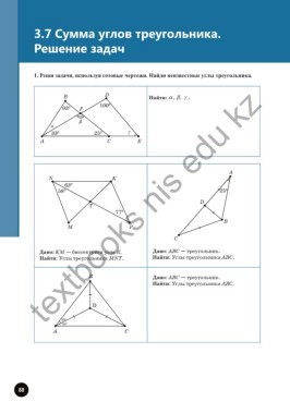 1. Реши задачи, используя готовые чертежи. Найди неизвестные углы треугольника.
