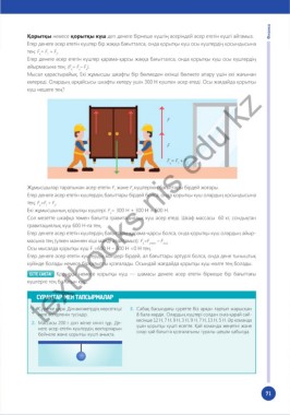 көтереді. Олардың әрқайсысы шкафты көтеру үшін 300 Н күшпен әсер етеді. Осы жағдайда қорытқы