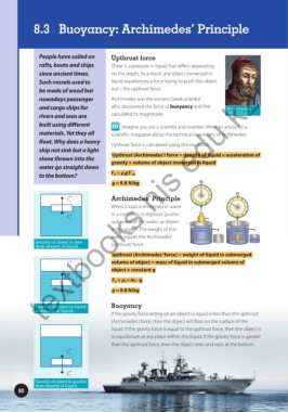 upthrust (Archimedes’ force) = weight of liquid in submerged