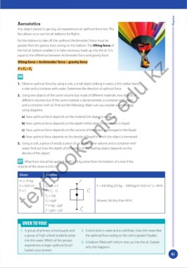 1. Observe upthrust force by using a cork, a small object sinking in water, a thin rubber band,