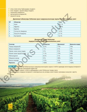 Дүниежүзі аймақтары бойынша ауыл шаруашылығында жұмыс істейтін адамдар үлесі