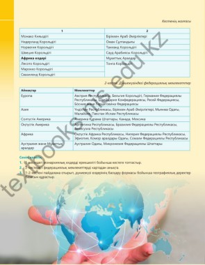 3. 1-2-кестені пайдалана отырып, дүниежүзі елдерінің басқару формасы бойынша географиялық деректер