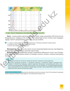 ? 1. 1-суреттегі картада берілген кестедегі деректерді тік бағанды диаграмма түрінде көрсет.