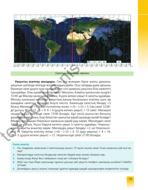 болса, Мәскеуде +2. Уақытты есептеу жолы: (+5) – (+2) = 3. Сен сағат 12:00-