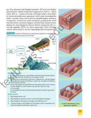 1. 2-суретті пайдаланып, жер бедері түрлеріне дүниежүзінің физи-
