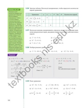 3.36 Заполни таблицу. Используй дискриминант, чтобы определить количество