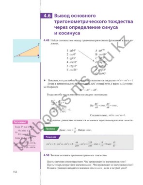 4.49 Найди соответствие между тригонометрическими функциями в двух ко-