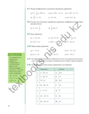 3.7 Назови коэффициенты следующих квадратных уравнений: