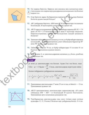 17. Трапецияның диагональдары 17 және 25 см-ге тең, ал биіктігі — 15 см.