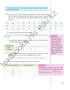Кестедегі деректерді интервалдар бойынша топтастыр: