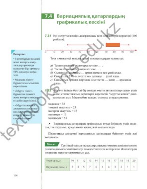 • Медиана тіктөт‑ г) Сыныптың орташа жартысы осы тестте … және … арасында