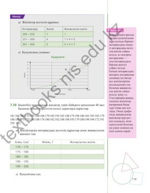 а) Жиіліктердің интервалдық кестесін құрастыр және жинақталған кіші мәніне қарай.