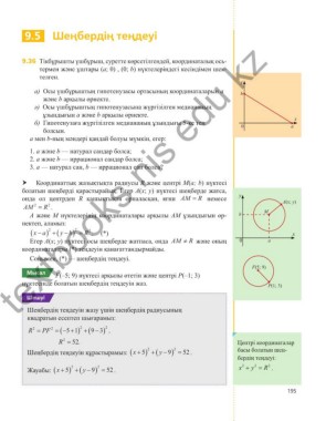 Шеңбердің теңдеуін құрастырамыз: x y 9 2 52 . Центрі координаталар