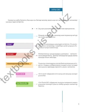 Оқулықтың әрбір бөлімінің басында осы бөлімді меңгеру арқасында қол жеткізілетін оқу нәтижелері