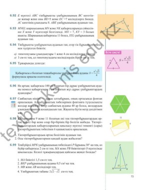 6.96 Не артық: қабырғасы 100 см болатын бір дұрыс үшбұрыштың ауда-