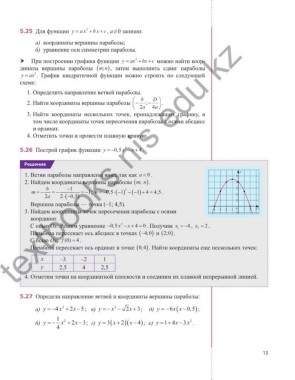 5.27 Определи направление ветвей и координаты вершины параболы:
