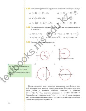 9.37 Определи по уравнению окружности координаты ее центра и радиус: