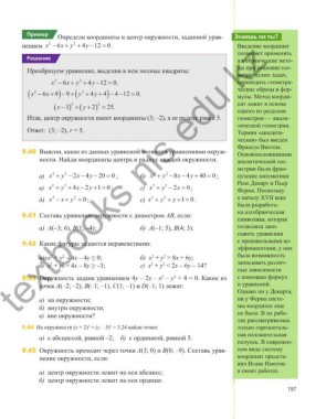 9.40 Вы яс ни, какие из дан ных урав не ний яв ля ют ся урав не ни я ми окруж- Основоположниками