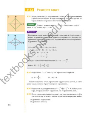 б) y Координаты точек пересечения прямой и окружности будут удовлет-