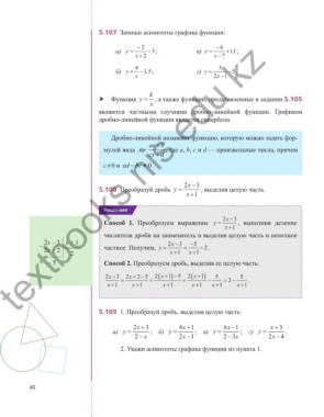5.108 Преобразуй дробь y 2 x 3 , выделив целую часть.