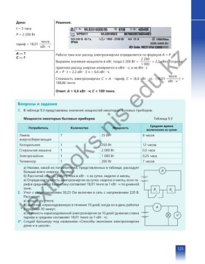 1. В таблице 9.3 представлены значения мощностей некоторых бытовых приборов.