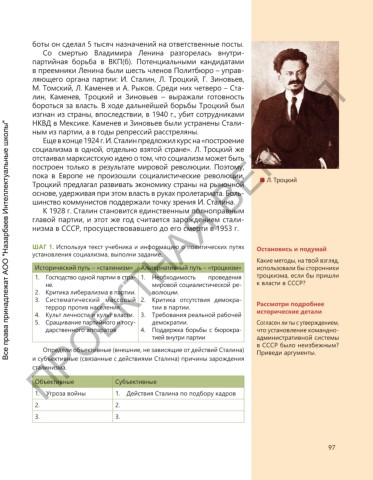 1. Господство одной партии в стра‑ 1. Необходимость проведения троцкизма, если бы пришли