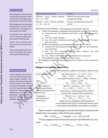 СЕН БІЛЕСІҢ БЕ? 2-кесте. Металдардың күрделі заттармен әрекеттесуі