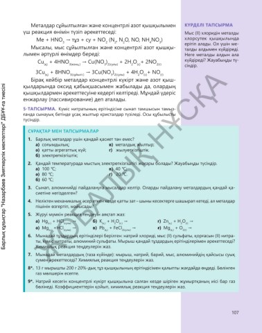 Металдар сұйылтылған және концентрлі азот қышқылымен КҮРДЕЛІ ТАПСЫРМА