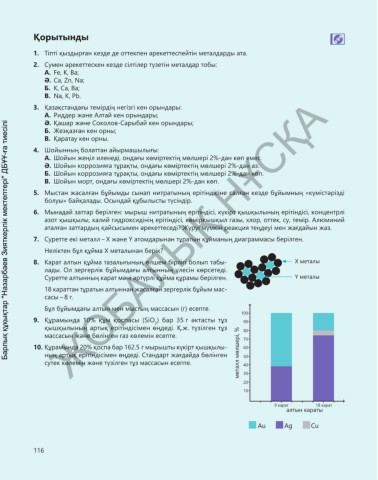 1. Тіпті қыздырған кезде де оттекпен әрекеттеспейтін металдарды ата.