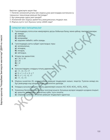 ә) хлормен, сутекпен, оттекпен реакция теңдеулерін құрастыр.