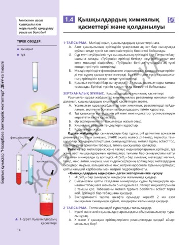 фенолфталеин диаметрі 25–32 мм сынауық, SPARK оқыту жүйесі, рН-метр, термобу, там-
