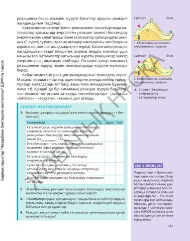 Ингибиторлар реакцияның белсендіру энергиясын лық катализаторлар. Олар