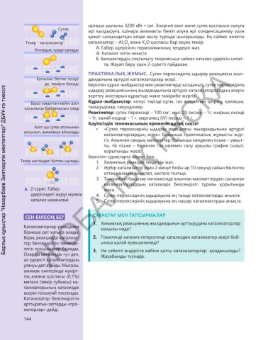катализаторлардың әсері» бойынша практикалық жұмысты жүр-