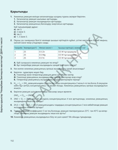 1. Химиялық реакция кезінде катализаторды қолдану туралы ақпарат берілген.