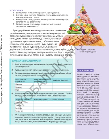 СҰРАҚТАР МЕН ТАПСЫРМАЛАР тағам пирамидасы