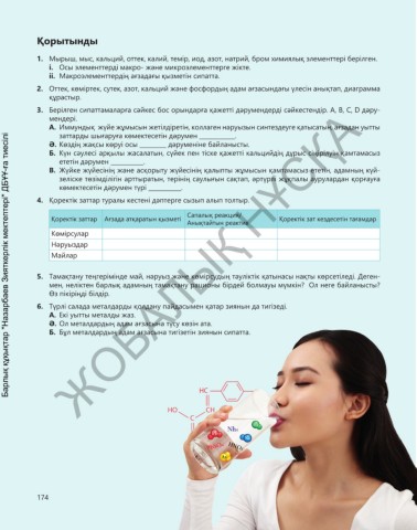 1. Мырыш, мыс, кальций, оттек, калий, темір, иод, азот, натрий, бром химиялық элементтері берілген.