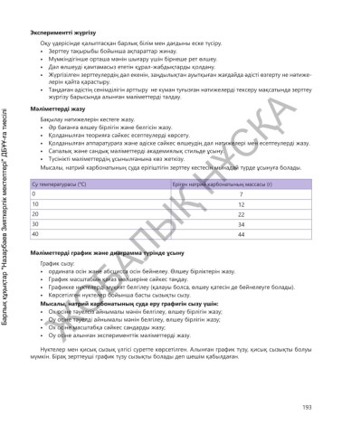 Мысалы, натрий карбонатының суда ерігіштігін зерттеу кестесін мынадай түрде ұсынуға болады.