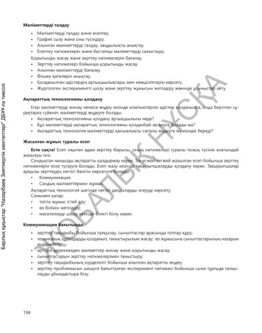 • Алынған мәліметтерді талдау, заңдылықты анықтау.