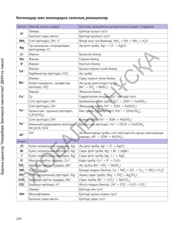 Катион Реактив, анион, жағдай Белгілері, реакцияның қысқартылған иондық теңдеулері
