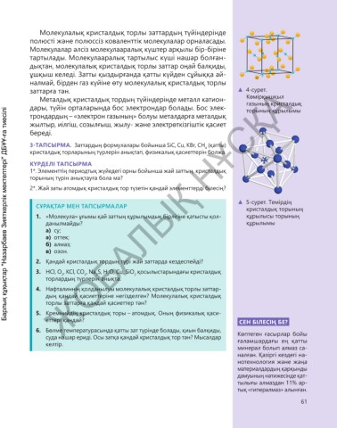 3. НCl, O , KCl, CO , Na S, H O, Cu, SiO қосылыстарындағы кристалдық